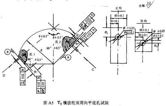 5.6.2.4 對比試塊上的平底孔(或橫通孔)作為人工缺陷,人工缺陷的尺寸必須符合驗收質量等級要求。