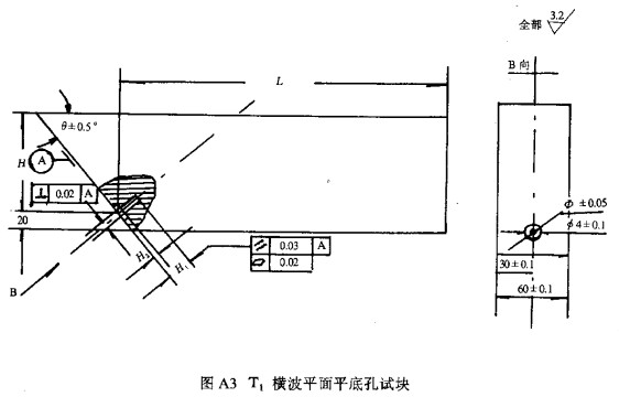 A3 橫波平底孔試塊見圖A3、圖A4、圖A5。