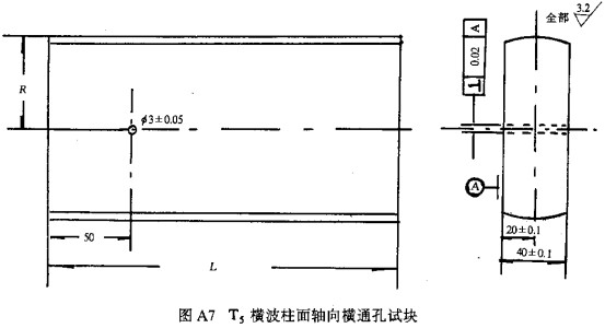 A4 橫波橫通孔試塊見圖A6、圖A7、圖A8。